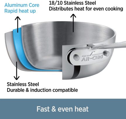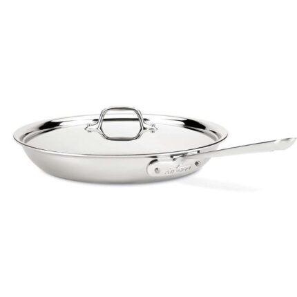All-Clad D3 Stainless Cookware, 12-Inch Fry Pan with Lid, Tri-Ply Stainless Steel, Professional Grade, Silver, Model: 41126