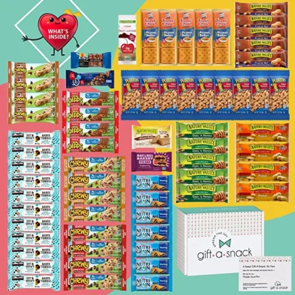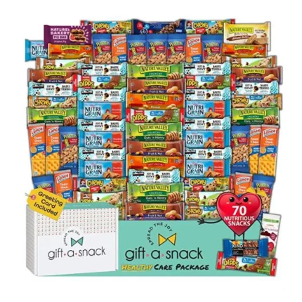 Granola Breakfast Bars Healthy Snack Box Care Package + Greeting Card (70 Count) Valentines 2023 Gift Basket Bulk Variety Pack Candies Chips – Crave Food Birthday Sweets Adults Her Him – Gift A Snack