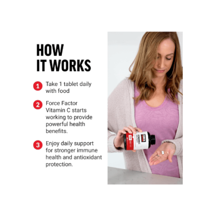 - BOOST IMMUNE FUNCTION: Force Factor Vitamin C is a robust immune support supplement. Each easy-to-swallow tablet delivers a potent dose of this crucial antioxidant, helping to fortify your immune system and promote overall wellness.