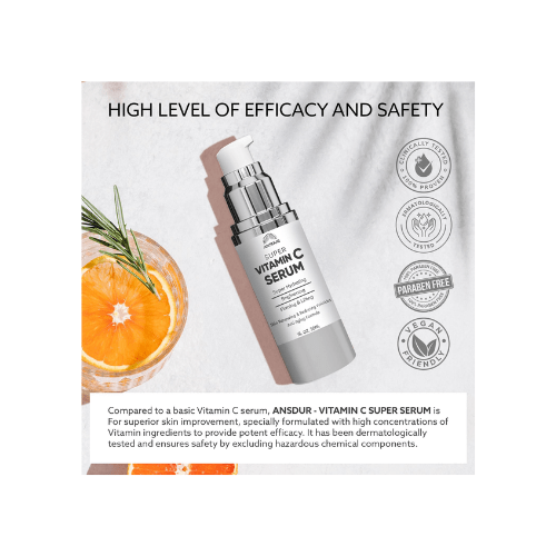 • Vitamin C Serum for Face Benefits: Experience deep hydration that goes beneath the surface, leaving your skin not only hydrated, but remarkably smooth and lifted. Elevate your skincare routine with Ansdur’s Super Vitamin C Serum, where every drop is a step toward a more youthful you.